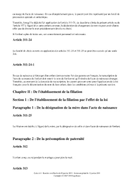Section 1 : De l'établissement de la filiation par l'effet de la loi