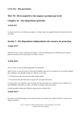 Titre XI : De la majorité et des majeurs protégés par la loi