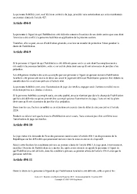 qui l'habilitation a été délivrée, dans les conditions prévues au premier alinéa de l'article 494-4 ainsi que la