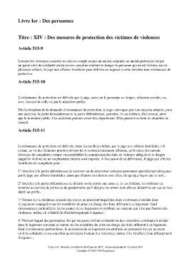 Titre : XIV : Des mesures de protection des victimes de violences