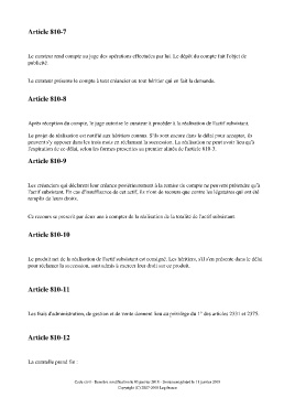 Le curateur rend compte au juge des opérations effectuées par lui. Le dépôt du compte fait l'objet de