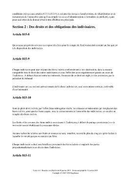 Section 2 : Des droits et des obligations des indivisaires.