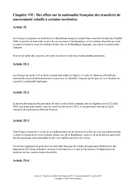 Chapitre VII : Des effets sur la nationalité française des transferts de