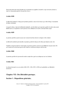 Les dispositions prévues aux articles 1049, 1051, 1052, 1055 et 1056 sont applicables aux libéralités