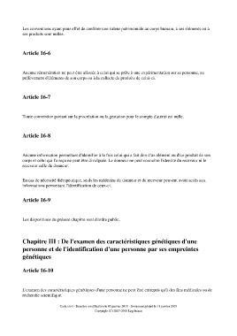 L'examen des caractéristiques génétiques d'une personne ne peut être entrepris qu'à des fins médicales ou de