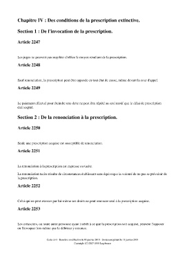 Chapitre IV : Des conditions de la prescription extinctive.