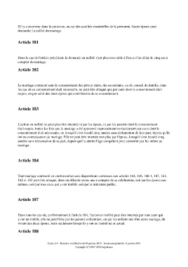 Tout mariage contracté en contravention aux dispositions contenues aux articles 144, 146, 146-1, 147, 161,