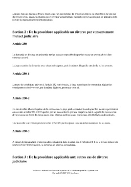 du présent livre, aucune demande en divorce par consentement mutuel ou pour acceptation du principe de la